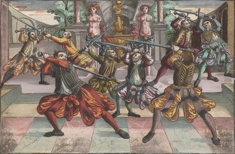 Långsvärdet är i denna perioden redan ett något föråldrat vapen, som fortsätter att övas med för sport, fysisk träning och tradition. Fäktningen som beskrivs är utan rustning, och vapnen som används är särskilt anpassade för att vara säkra att fäkta med.